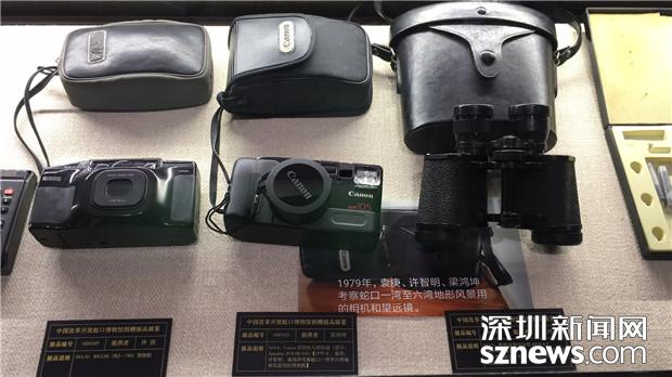 1979年,考察蛇口所用相機(jī)和望遠(yuǎn)鏡。
