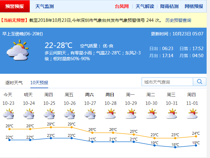 進(jìn)入10月以來(lái),天氣漸漸轉(zhuǎn)涼,目前已有兩次明顯冷空氣影響深圳,主要出現(xiàn)在10月11日至12日、16日至17日,10月27日至29日還將有冷空氣。據(jù)了解,與去年相比,今年冷空氣來(lái)得早一些,最早在9月上旬就有冷空氣影響了,冷空氣的頻次也相對(duì)較多,但強(qiáng)度都不是太強(qiáng),所以總體氣溫較舒適。