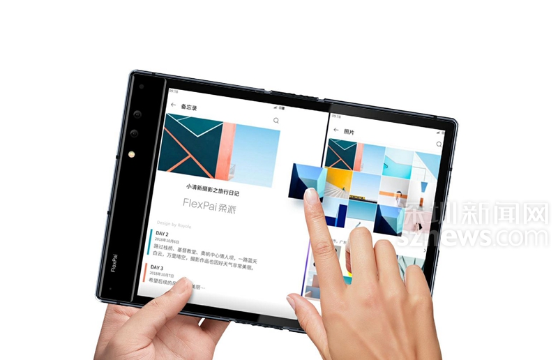FlexPai既可以折疊成為智能手機,也可以展開成為平板電腦,方便用戶隨時隨地大屏看視頻、展示PPT,真正意義上解決了高清大屏和便攜性這個長期被認為難以調(diào)和的矛盾。