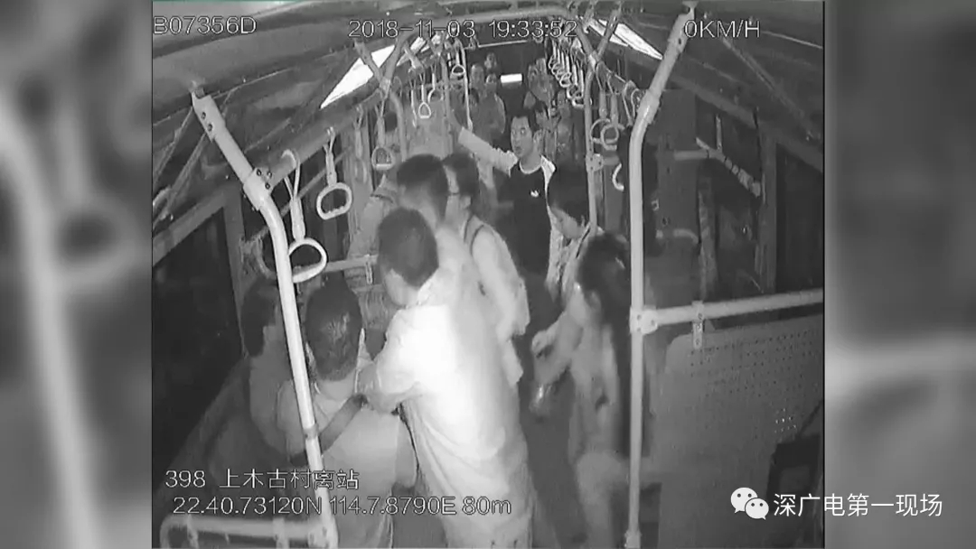 周圍的乘客看到這名男子動(dòng)手打人后,一片嘩然,駕駛員立刻將車停在路邊并上前制止。