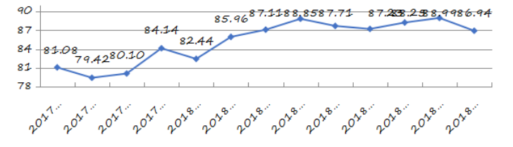 圖12鹽田區(qū)城市交通文明指數(shù)走勢圖 (計量單位:分)