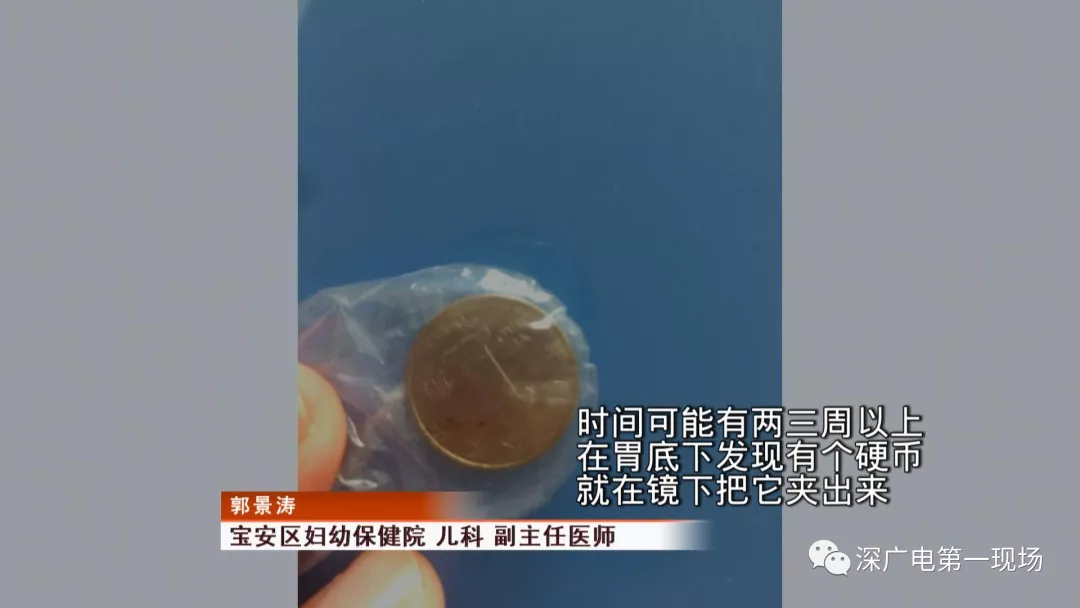 經(jīng)過(guò)兩個(gè)小時(shí)的時(shí)間,兒科醫(yī)生郭景濤為患兒取出了藏在胃底的一角錢硬幣。目前,患兒已經(jīng)痊愈出院。