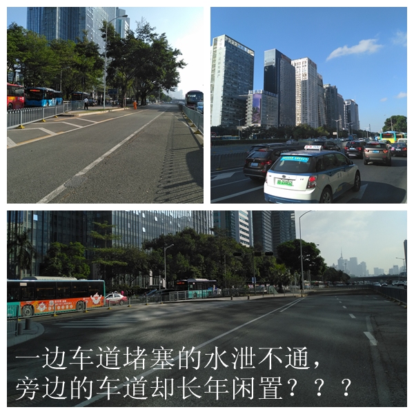 一邊是擁堵不堪的狹小道路,一邊是長年閑置的車道,網(wǎng)友在公交車上看著旁邊空空如也的馬路,手表走過該打卡的點(diǎn),他又遲到了。