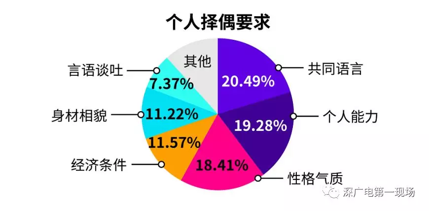 另外,調(diào)查顯示,共同語(yǔ)言、個(gè)人能力、性格氣質(zhì),為單身男女在擇偶時(shí)最看重的三個(gè)方面,其次為經(jīng)濟(jì)條件、身材相貌、言語(yǔ)談吐。