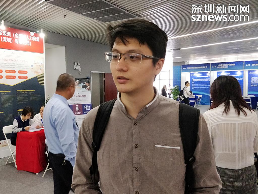 現(xiàn)場(chǎng)應(yīng)聘的劉先生已有一年的工作經(jīng)驗(yàn),此次高端人才招聘會(huì)的信息是通過(guò)深圳市人力資源社會(huì)保障局的微信公眾號(hào)得知,故來(lái)到現(xiàn)場(chǎng)希望尋得一個(gè)對(duì)口的崗位。