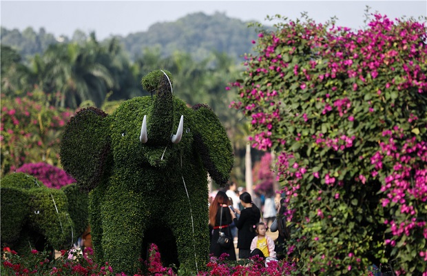 2018年兩大花展不僅在規(guī)模、數(shù)量上較往年有所提升,內(nèi)容和形式也都有所創(chuàng)新。其中,簕杜鵑市花展將打造“花繁情盛”、“花團(tuán)錦簇”、“花影繽紛”、“花姿清雅”四個(gè)重要篇章,形成花瀑、花樹(shù)、花廊、花藝四個(gè)展區(qū),并用創(chuàng)新手法營(yíng)造花墻、入口標(biāo)識(shí)及長(zhǎng)約13米、高3.6米的孺子牛、大象群、孔雀、海豚等大型綠雕。