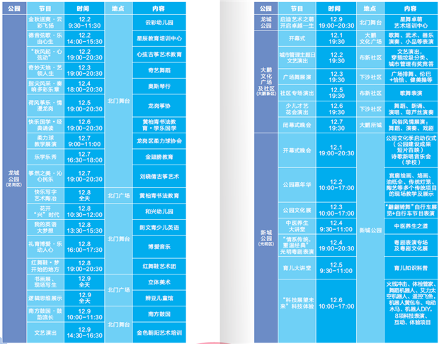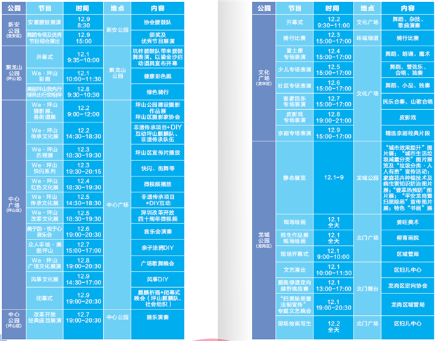 據(jù)了解,本次公園文化季各區(qū)將繼續(xù)瑞出豐富多彩的活動(dòng)和節(jié)目。例如,福田區(qū)香蜜公園將舉行第二屆集體婚禮;鹽田區(qū)內(nèi)湖公園動(dòng)靜結(jié)合,靜態(tài)推出珊瑚海洋科普展,動(dòng)態(tài)推出極限運(yùn)動(dòng)專場(chǎng)演出;龍崗區(qū)龍城公園策劃了愛(ài)跑綠道定向越野挑戰(zhàn)賽,推廣全民健身;龍華區(qū)文化廣場(chǎng)多場(chǎng)專場(chǎng)表演,舞蹈、魔術(shù)、器樂(lè)演奏等輪番上演等等。