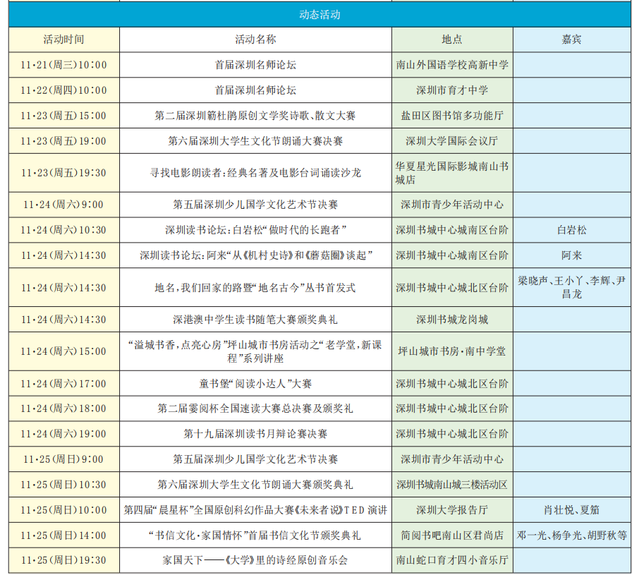 第十九屆深圳讀書(shū)月精彩活動(dòng)預(yù)告(11·19-11·25)