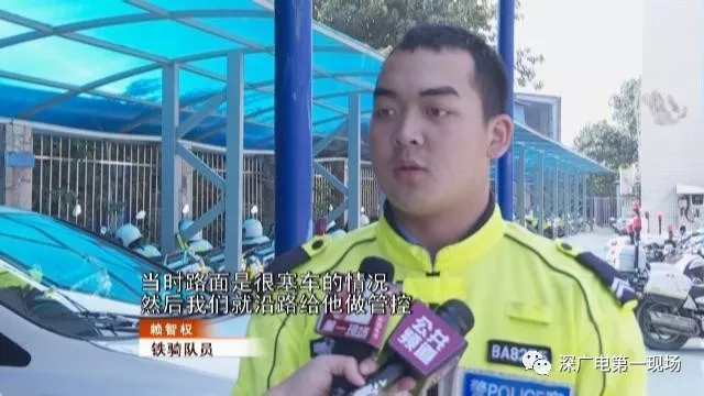 鐵騎到場(chǎng)沿路管控,正在路面巡邏,松崗交警中隊(duì)鐵騎隊(duì)員賴(lài)智權(quán)和他的兩名同事,立即趕到現(xiàn)場(chǎng)。