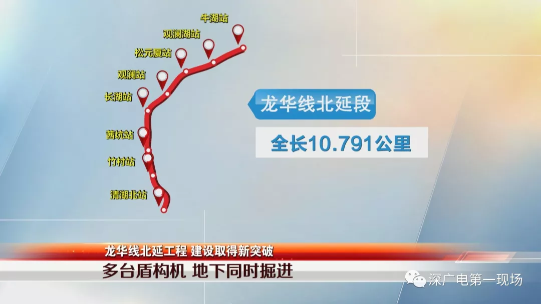 龍華線北延段工程線路,由目前龍華線終點(diǎn)站清湖站引出,由南至北依次沿和平路、觀瀾大道、高爾夫大道敷設(shè),沿途設(shè)有清湖北站、竹村站、茜坑站、觀瀾湖站、牛湖站等共8個(gè)車站,全長(zhǎng)10.7公里,目前其他車站和區(qū)間的建設(shè)也在加緊推進(jìn)。