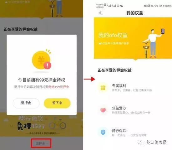 ▲ofo共享單車(chē)退押金頁(yè)面