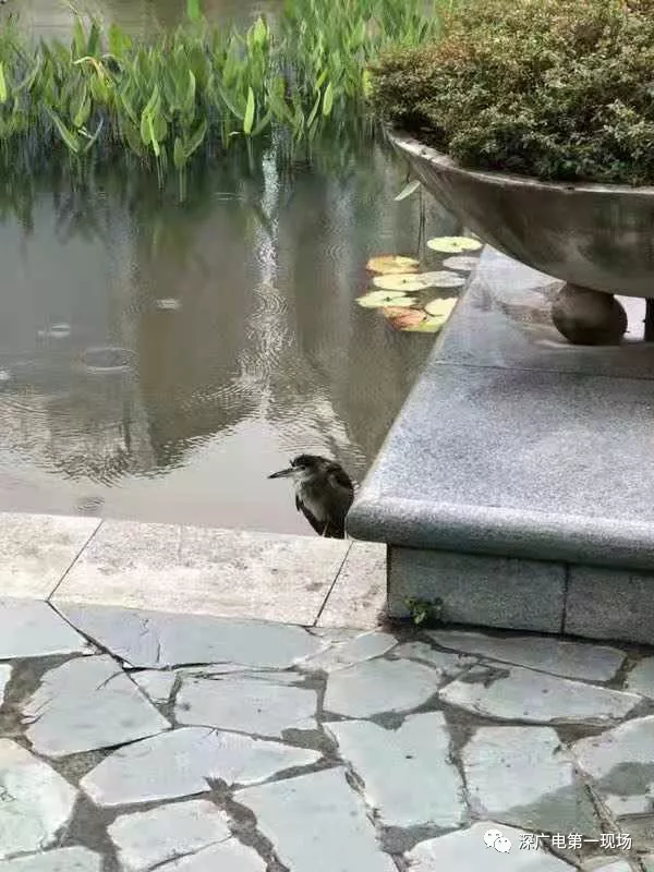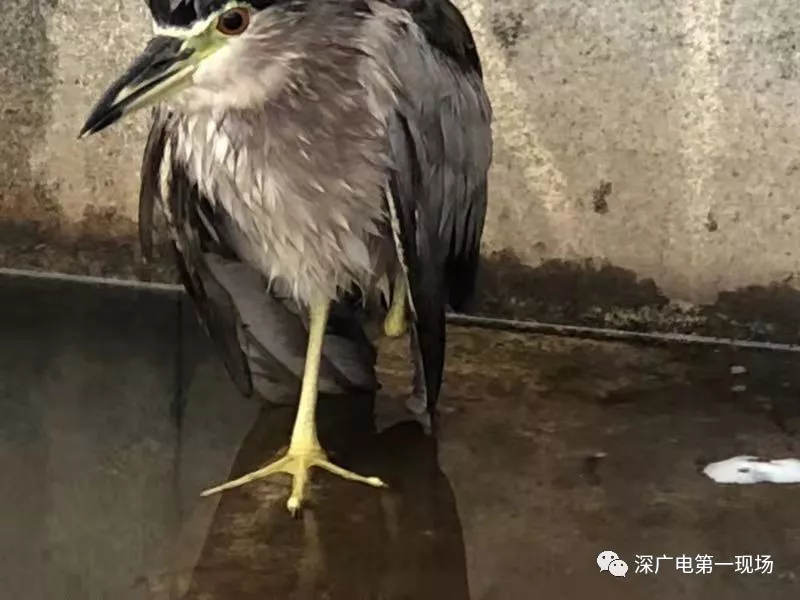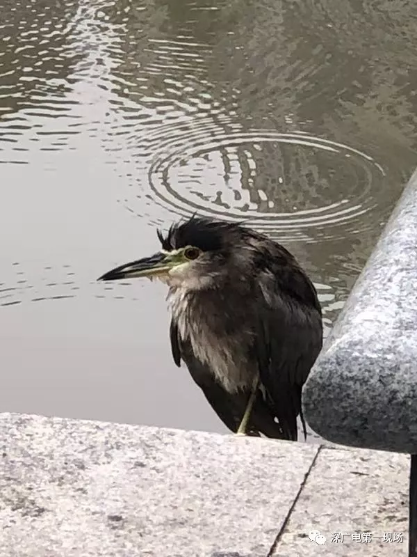 公園的保安發(fā)現(xiàn)后,馬上致電深圳市野生動物保護(hù)協(xié)會,工作人員許先生到場后,把這只夜鷺解救上岸。