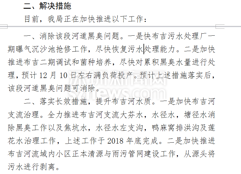 針對(duì)上述疑問,龍崗區(qū)環(huán)水局承諾將抓緊推進(jìn)布吉污水處理廠一期曝氣沉沙池?fù)屝薰ぷ?,盡快恢復(fù)污水處理能力,而二期工程也預(yù)計(jì)于12月10日左右滿負(fù)荷投產(chǎn),以上措施落實(shí)后,該環(huán)水局認(rèn)為此段河道黑臭問題便可消除。為了保障治水工作長(zhǎng)期有效,環(huán)水局還制定了加快布吉河支流治理及加快推進(jìn)布吉河流域內(nèi)小區(qū)正本清源與雨污管網(wǎng)建設(shè)工作的計(jì)劃。
