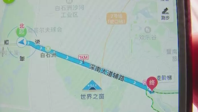《第一現(xiàn)場(chǎng)》記者也來(lái)到位于深南大道上選手抄近道的地點(diǎn),并進(jìn)行了實(shí)地測(cè)算,該位置距離民俗村折返點(diǎn)有2.1公里,一來(lái)一回,就是4.2公里,按照配速,大概可以節(jié)省三十分鐘的時(shí)間。