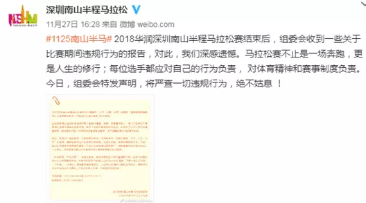 2018年南山半程馬拉松賽在上周日落幕,今年賽事報(bào)名人數(shù)比往年更多,也更火爆,然而這場(chǎng)已經(jīng)結(jié)束的賽事卻熱議不減,因?yàn)椴簧龠x手被發(fā)現(xiàn)在比賽中,出現(xiàn)抄近道、套牌、替跑等違規(guī)行為。