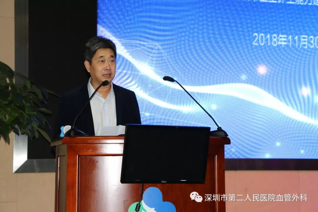 2018年11月30日,中國(guó)人民解放軍海軍軍醫(yī)大學(xué)附屬長(zhǎng)海醫(yī)院血管外科、心臟瓣膜疾病微創(chuàng)診治中心主任,上海市血管系統(tǒng)疾病臨床醫(yī)學(xué)中心主任,全軍血管外科研究所所長(zhǎng),中國(guó)醫(yī)師協(xié)會(huì)腔內(nèi)血管學(xué)分會(huì)(二級(jí))主任委員,國(guó)際知名血管外科專家景在平教授,來(lái)到深圳市第二人民醫(yī)院(深圳大學(xué)第一附屬醫(yī)院)(以下簡(jiǎn)稱“我院”)進(jìn)行座談、臨床查房、會(huì)診以及向全市住院醫(yī)師規(guī)培學(xué)員、教師與基地管理人員進(jìn)行專題學(xué)術(shù)講座。
