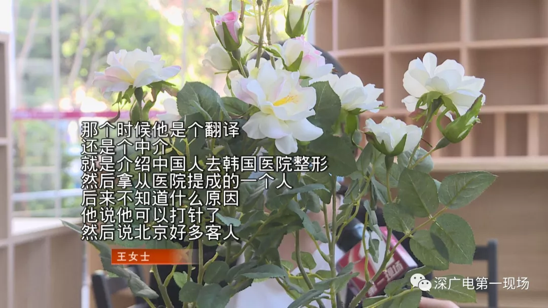 王女士說,認識這名韓國男子后,對方多次給她打了整容針,打針的地方基本都是羅湖一家星級酒店的客房里面。