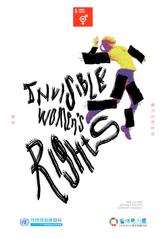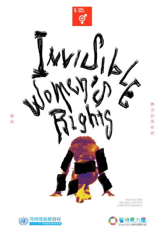 作品解釋 /在一些國家的電視體育轉播中,女性的肢體是不能裸露于外界視線之中的??尚Φ氖牵菊宫F(xiàn)身姿動作的體育賽事,卻被黑色馬賽克所遮擋,顯得畫面十分尷尬。這就是女性在當下的權利阻礙,試問,男性在體育賽事中也有相同待遇嗎?