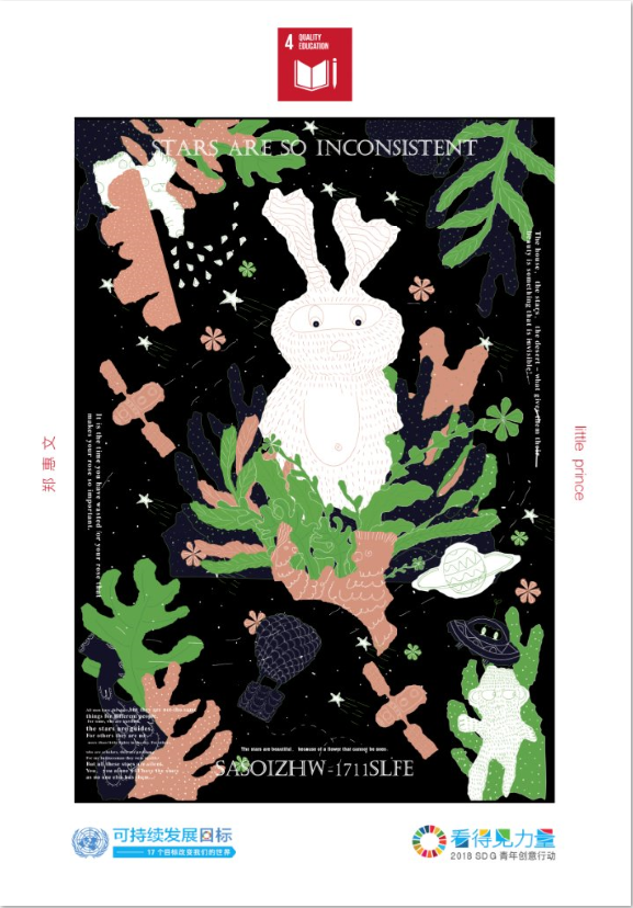 在2018年,項目以征集“SDG青年創(chuàng)意行動”的方式,在近3個多月的征集時間里,共收到了來自5個國家和地區(qū)的79所大學的師生以及32家機構/獨立設計師參與投稿的1062件(套)作品,作品類型也不再只是平面設計,包括數(shù)字新媒體、建筑設計以及品牌策劃、交互設計軟件、網(wǎng)站搭建等多種表現(xiàn)形式的作品均。經知名設計師張達利、黑一烊、宋博淵、鄧遠健和社會創(chuàng)新專家馮曉近10個小時的三輪現(xiàn)場評審,共有1件(套)作品獲得“特別大獎”,10件(套)作品獲得“最佳獎”,101件(套)作品獲得“優(yōu)異獎”。在評選和公示期之后,獲獎名單已于12月初正式發(fā)布,系列活動創(chuàng)意與可持續(xù)發(fā)展論壇和面向全球招募的獲獎作品聯(lián)合策展計劃也即將開啟。