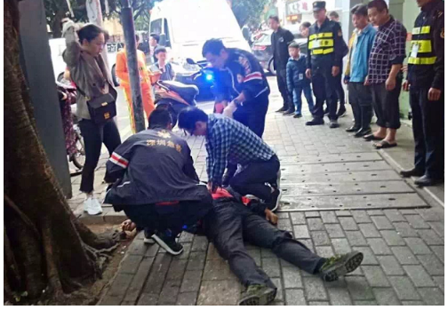 等待120的過程中,周青雨給這名倒地男子按壓幾輪后發(fā)現(xiàn),有了一點微弱呼吸。這個時候另一個市民走向前,摸了倒地男子的脈搏后,接替周青雨繼續(xù)按壓。后經(jīng)了解,其為市第二人民醫(yī)院神經(jīng)內科醫(yī)生黃興。