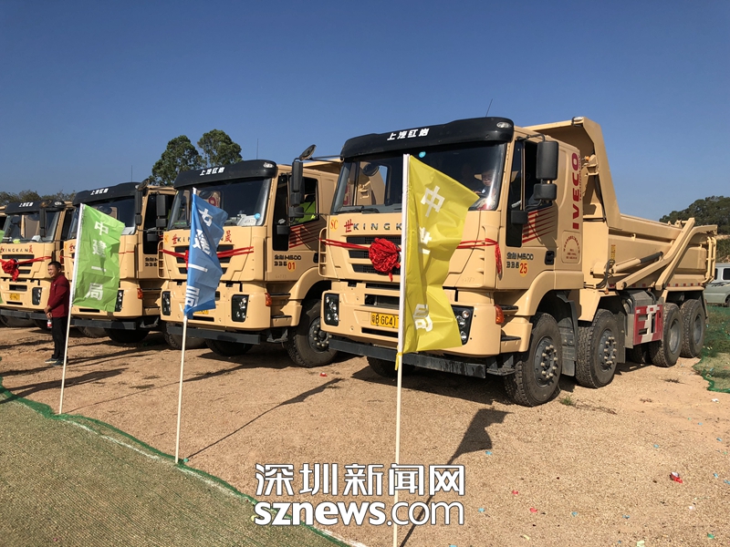 準(zhǔn)備進(jìn)場施工的車輛(陳婕攝)
