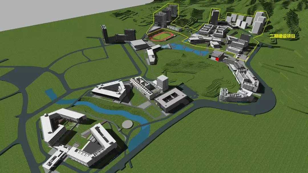 二期工程總建筑面積約44萬(wàn)平方米,其中地上建筑面積約27.5萬(wàn)平方米,地下建筑面積約16.5萬(wàn)平方米,主要建設(shè)內(nèi)容包括中央圖書(shū)館綜合樓、法商學(xué)部、行政辦公與專(zhuān)職科研用房、公共教學(xué)樓、北區(qū)宿舍、食堂及留學(xué)生生活用房共16棟建筑。