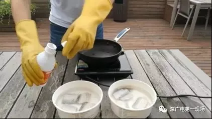 第三步,分別將正常帶魚和浸泡了福爾馬林的帶魚進(jìn)行油炸。