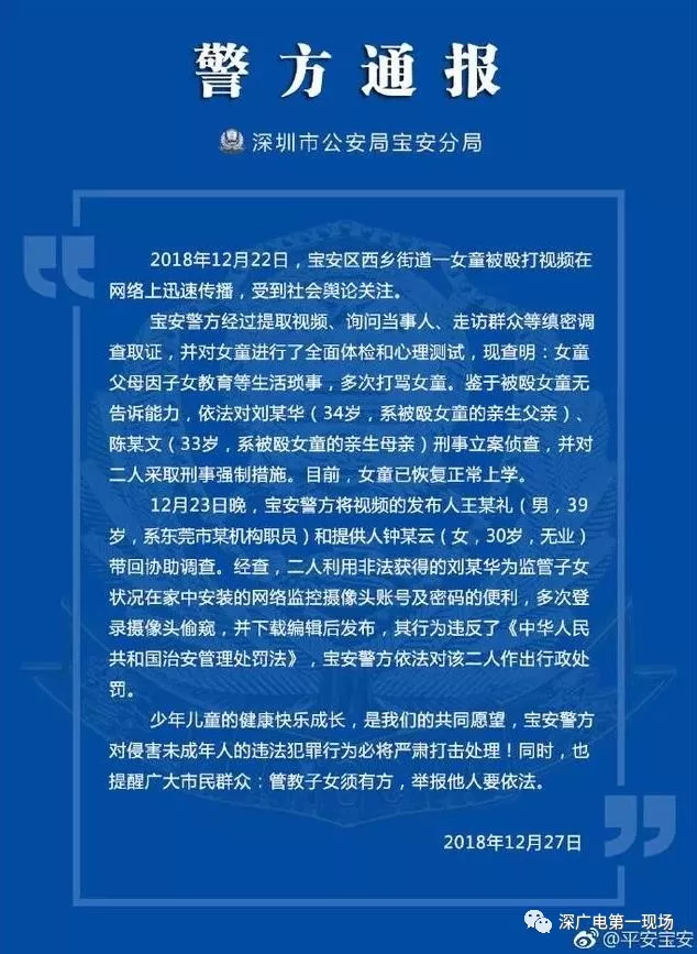 深圳警方通報“父母虐童”案處理結(jié)果: