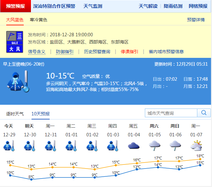 深圳新聞網(wǎng)2018年12月29日訊(記者 陳婕)深圳市氣象局預(yù)計,29日-元月3日受冷空氣持續(xù)影響,氣溫顯著下降,天氣持續(xù)寒冷,最低氣溫將降至7-8℃,沿海和高地有7-9級偏北大風(fēng),間中有小雨。寒冷天氣將持續(xù)6天左右。