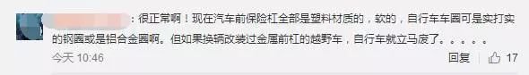 還有有不少網(wǎng)友指出,"很正常??!現(xiàn)在汽車前保險杠全部是塑料材質(zhì)的,軟的,自行車車圈可是實打?qū)嵉匿撊蚴卿X合金圈啊。但如果換輛改裝過金屬前杠的越野車,自行車就立馬廢了""如果把這些拿來冷嘲熱諷,鼓勵所有汽車制造商弄成實打?qū)嵉挠茶F,那么發(fā)生碰撞的時候就笑不出了""對一個局部點進行沖擊。力度是非常大的,換其他大部分車都一樣"。