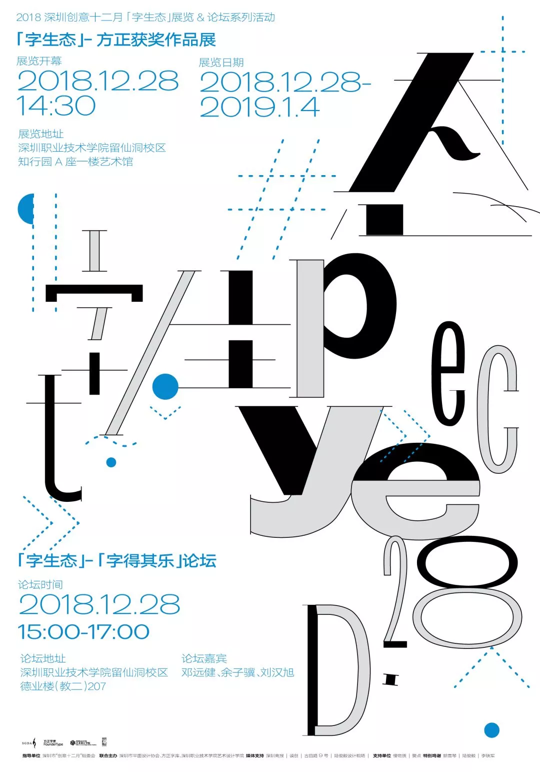 深圳新聞網(wǎng)2019年1月2日訊 2018年12月28日,“字生態(tài)-文字設(shè)計(jì)系列活動(dòng)”開(kāi)幕式在深圳職業(yè)技術(shù)學(xué)院留仙洞校區(qū)舉行。作為本屆創(chuàng)意十二月的重要內(nèi)容之一,本次活動(dòng)由深圳市平面設(shè)計(jì)協(xié)會(huì)、方正字庫(kù)與深圳職業(yè)技術(shù)學(xué)院藝術(shù)設(shè)計(jì)學(xué)院共同舉辦,旨在新的語(yǔ)境和文字生態(tài)下,回顧當(dāng)代中國(guó)漢字設(shè)計(jì)成果、展示傳統(tǒng)漢字美學(xué)再造路徑、探討文字設(shè)計(jì)的多維呈現(xiàn)與全新價(jià)值輸出可能。