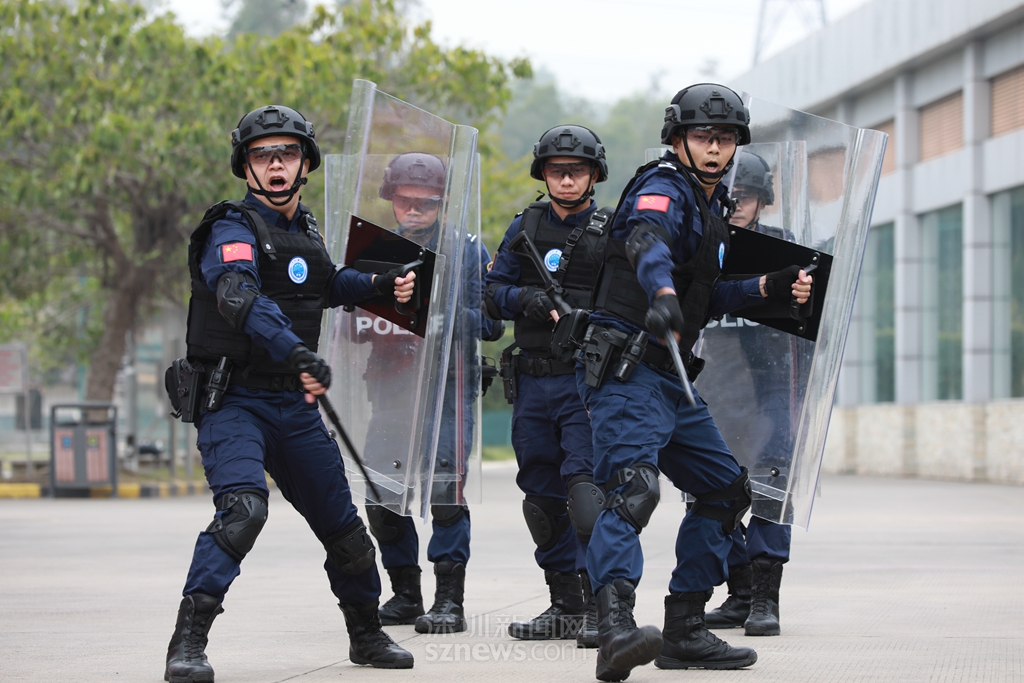 隊列會操步履整齊劃一,動作規(guī)范有力,擒敵拳演練虎虎生威,遒勁剛猛,展現(xiàn)了深圳監(jiān)獄警察訓(xùn)練有素、團結(jié)一致的團隊風采。特警隊員壓軸表演的警棍盾牌操,動作迅速,合作默契,彰顯深圳監(jiān)獄警察過硬的專業(yè)本領(lǐng)和團結(jié)協(xié)作的團隊精神。值得一提的是,在9個隊列中,有1個隊列全部由女警組成,她們聲音洪亮,英姿颯爽,巾幗不讓須眉,是深圳監(jiān)獄警察團隊中一道亮麗的風景。
