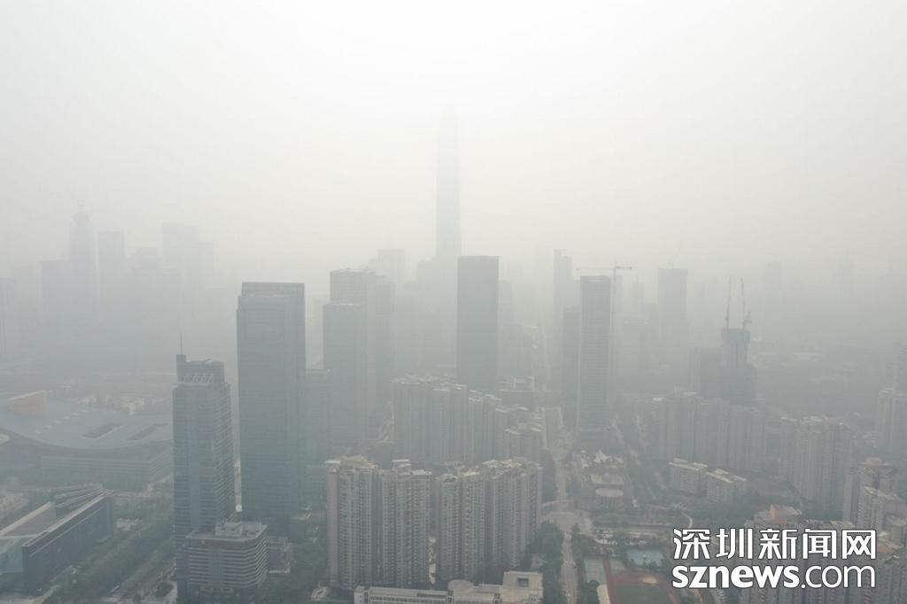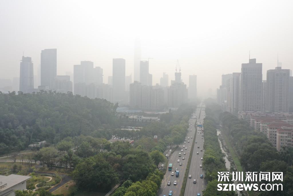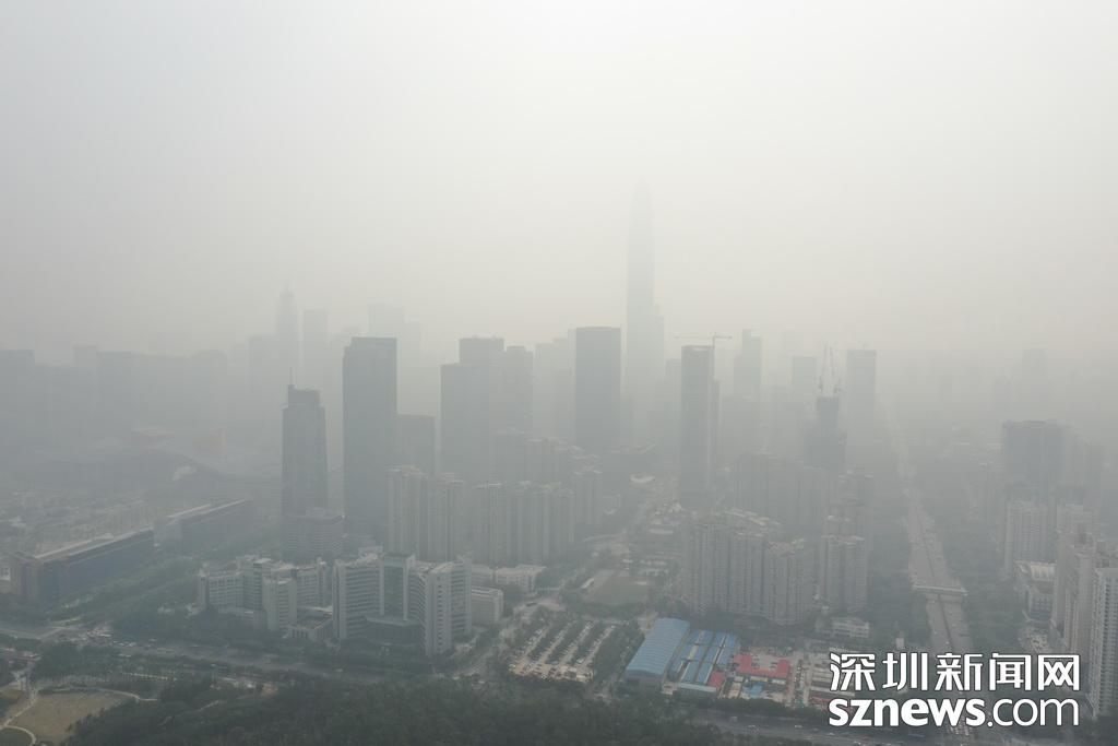 1月12日,霧霾襲深,深圳天氣君發(fā)布預(yù)警,今天最好不要在室外玩耍。記者中午用無人機(jī)航拍福田CBD區(qū)域,鏡頭下,市民中心和平安金融大廈兩個地標(biāo)幾乎無法辨別,新洲路上能見度很低,一切都仿佛浸在化不開的濃湯里。深圳天氣君在微博提醒:弱北風(fēng)影響下,不利于污染物擴(kuò)散,我市中西部地區(qū)下午會持續(xù)十面“霾”伏,灰霾黃色預(yù)警信號生效中,各位盡量不要長時(shí)間戶外活動。