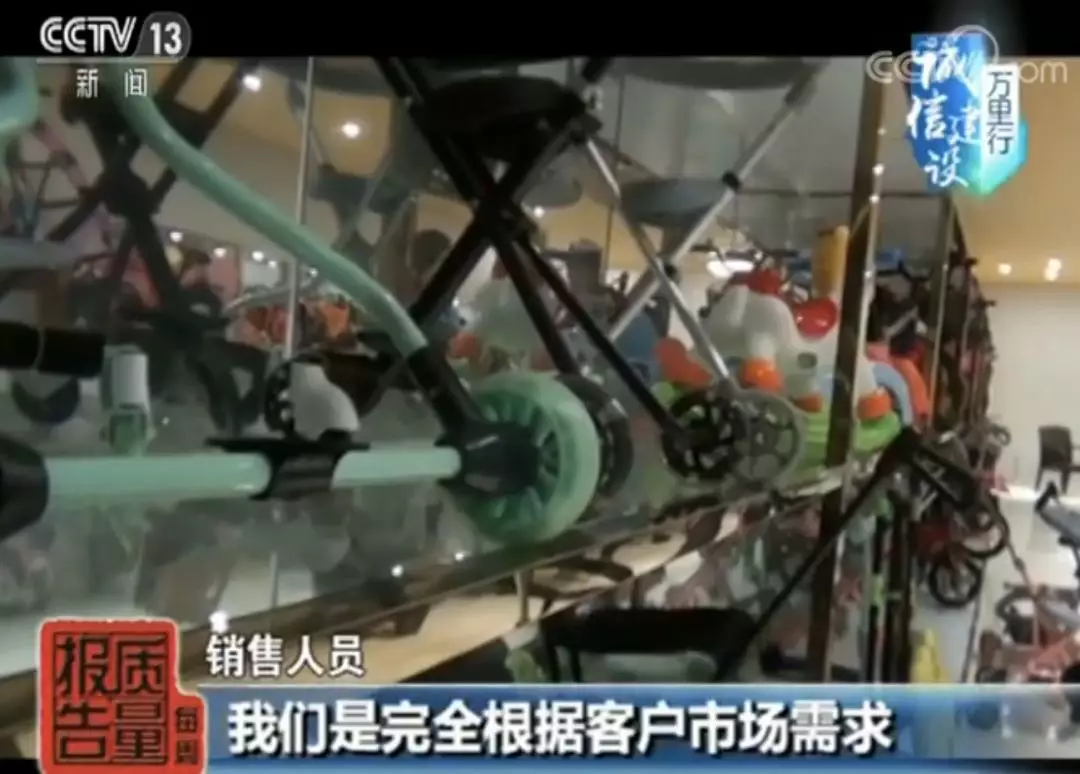 銷售人員:“遛娃神器“這兩年剛出來(lái),沒(méi)有專門的生產(chǎn)標(biāo)準(zhǔn),我們就量量,比劃比劃,沒(méi)有圖紙。