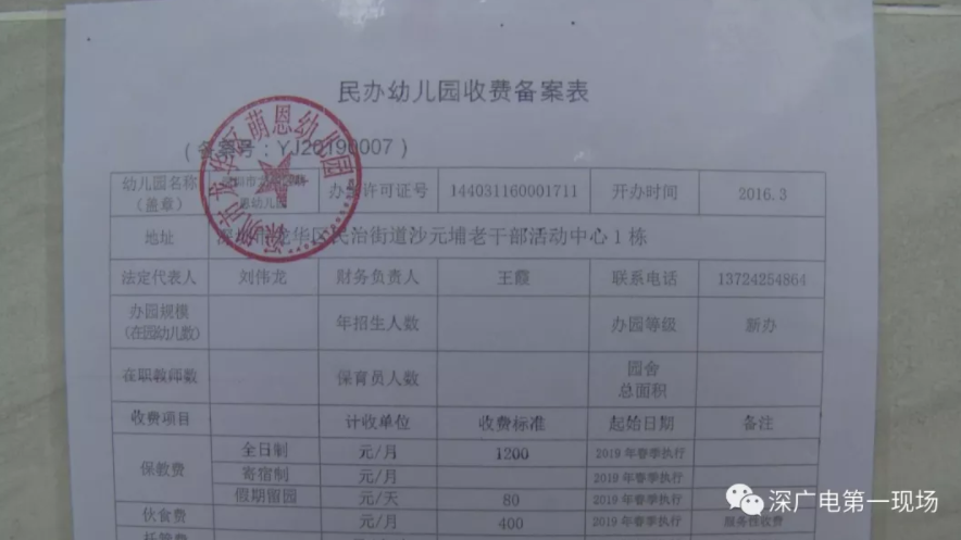 對此,龍華教育主管部門回復(fù):2016年3月同意萌恩幼兒園設(shè)立;2018年7月該園取得民辦非企業(yè)單位登記證書的辦學(xué)資質(zhì),2018年12月向教育局申請了收費備案;2019年1月批復(fù)同意他們的收費標(biāo)準(zhǔn)。