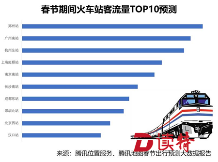 鄭州作為中國(guó)鐵路的中心,當(dāng)仁不讓地成為全國(guó)最熱門的火車站。而廣州南站、杭州東站、上海虹橋站預(yù)計(jì)分列二、三、四位,基本集中在人流密集的一線城市及區(qū)域性中心城市。