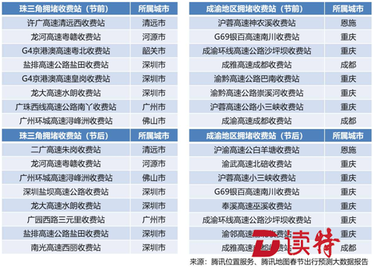 在珠三角地區(qū),擁堵收費(fèi)站全部位于廣東省內(nèi),集中分布在廣州、深圳等中心城市周邊,及通往湖南、江西的省界區(qū)域,擁堵時(shí)間與長(zhǎng)三角相同。長(zhǎng)深高速東江大橋至泰美服務(wù)區(qū)、莞佛高速坦尾立交至虎門大橋,預(yù)計(jì)將成為節(jié)前、節(jié)后最擁堵的高速路段。