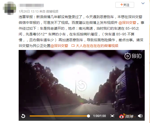 近日,有網(wǎng)友在微博爆料稱自己的車(chē)在高速上遇到惡意別車(chē),并 @深圳交警,爆料原文如下。