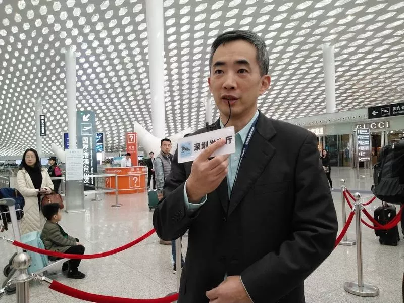 深圳機(jī)場(chǎng)T3航站樓航站區(qū)管理部黨支部書記陳進(jìn)泉介紹,每年春運(yùn)期間機(jī)場(chǎng)對(duì)廣大離深旅客送春聯(lián)的活動(dòng),這次與深圳發(fā)布廳合作,邀請(qǐng)寶安區(qū)書法家協(xié)會(huì)書法家給廣大旅客送“?!?把祝福帶到全國(guó)各地,很有意義。他祝福大家新春快樂(lè),闔家安康。