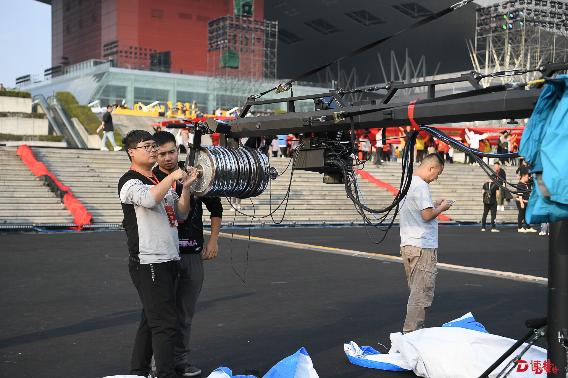 “你們的目光所及都是舞臺(tái)!”當(dāng)記者當(dāng)天下午來(lái)到市民中心廣場(chǎng)時(shí)彩排,分會(huì)場(chǎng)總導(dǎo)演孫濱指著搭建的主舞臺(tái)、舞臺(tái)前方的階梯和廣場(chǎng)、以及舞臺(tái)后方的高樓大廈這樣說(shuō)。