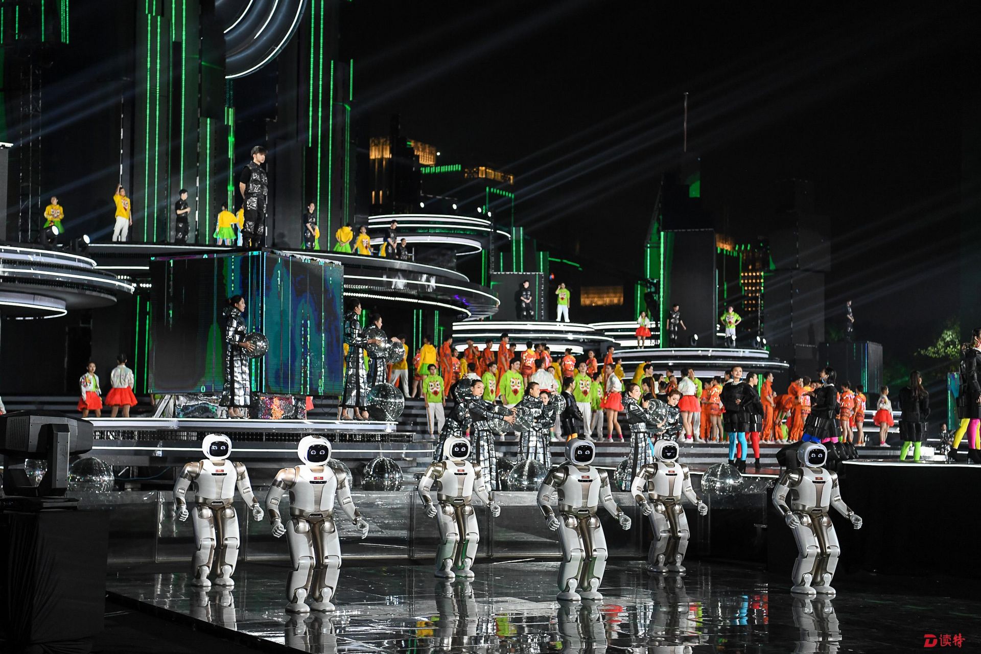 “可以說(shuō)深圳分會(huì)場(chǎng)的每一個(gè)節(jié)目都貫穿了科技元素。”比如舞臺(tái)上最新型的跳舞機(jī)器人、機(jī)械臂,演員衣服上嵌入的柔性屏,還有無(wú)人機(jī)、撲翼飛行器、云軌、云巴等等。晚會(huì)還使用了非常多的AR(增強(qiáng)現(xiàn)實(shí))技術(shù),在屏幕上把虛擬世界套在現(xiàn)實(shí)世界并進(jìn)行互動(dòng),虛實(shí)結(jié)合呈現(xiàn)出十足的“夢(mèng)幻”之感。
