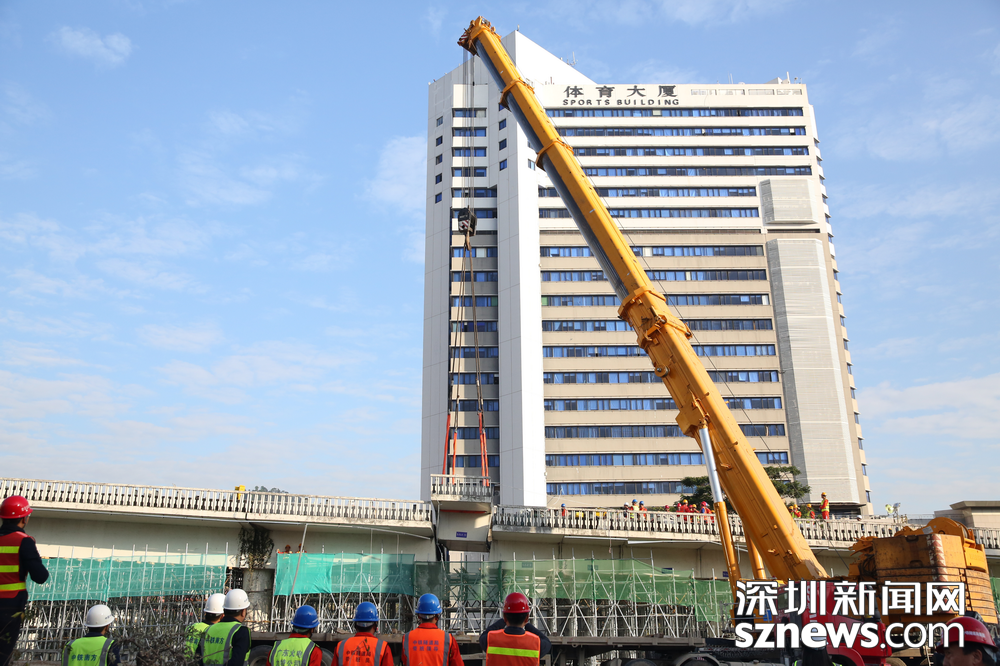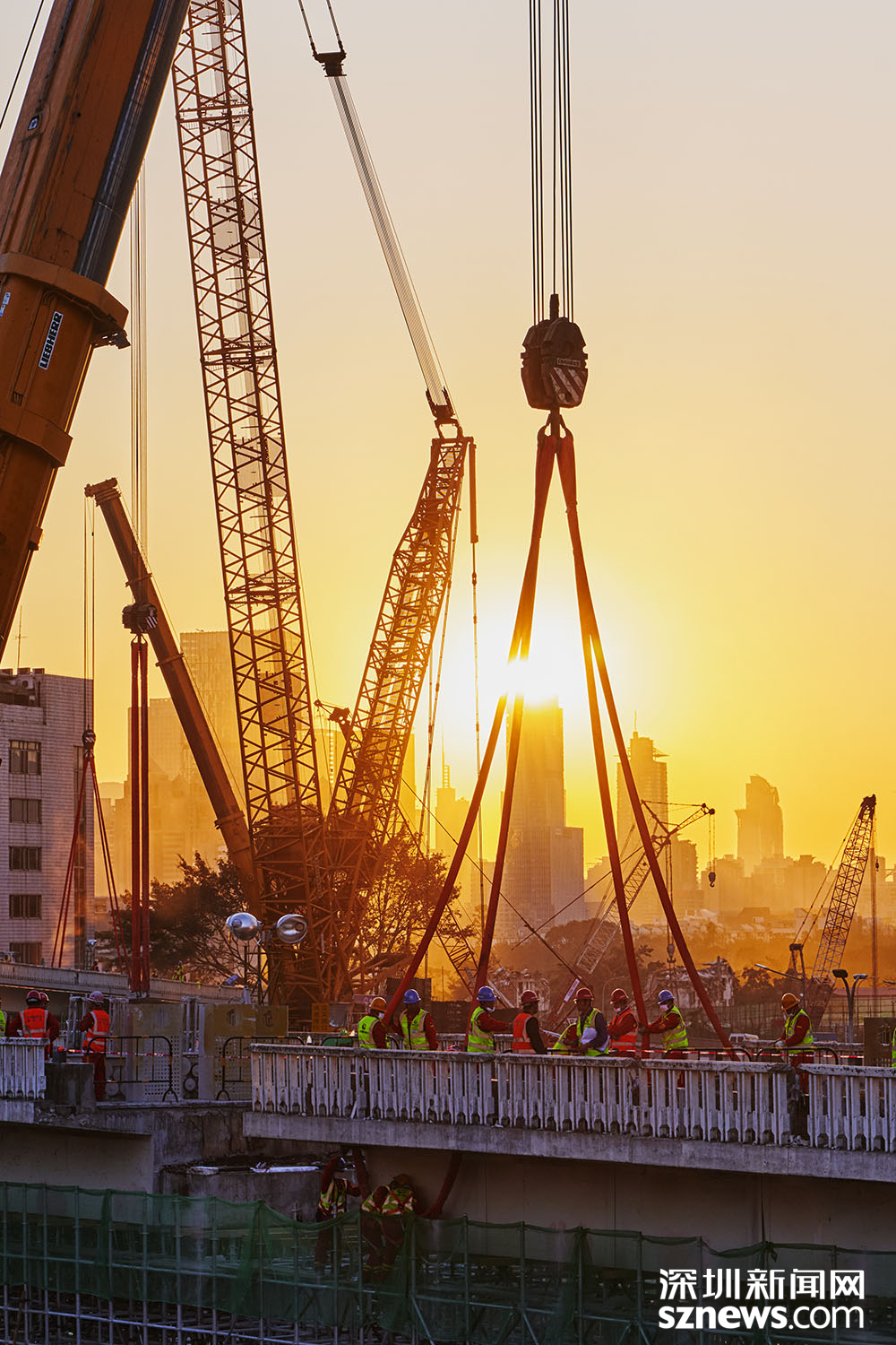 深圳新聞網(wǎng)2019年2月3日訊(記者 黃賢娟 趙穎致 黃婉婷 胡志方 林婉婷)與日漸冷清下來的街道商鋪不同,春節(jié)前夕的黃木崗立交仍是一片繁忙景象。這是2月2日傍晚,數(shù)百名身穿橙黃馬甲的工人正在忙著將立交橋切割分離。平板車、模塊車往來穿梭,將一塊塊拆卸下來的橋體陸續(xù)運(yùn)走。夕陽西下,橙黃色工服反射出點(diǎn)點(diǎn)熒光,成為安靜的城市中獨(dú)特的點(diǎn)綴。