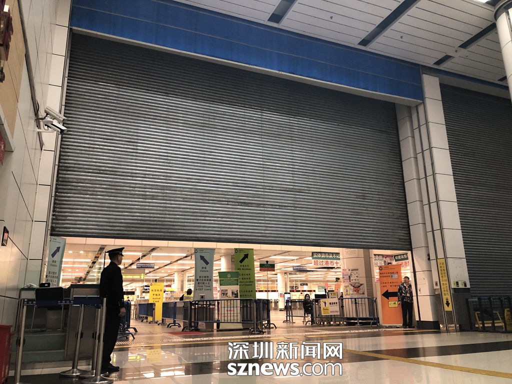 2月3日6:30,深圳灣口岸出境大廳深港分界線的閘門緩緩開啟(通訊員 黃釗攝)