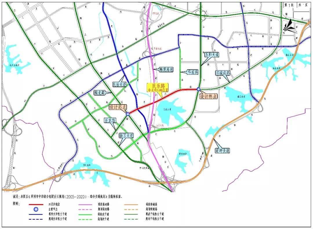 民樂路市政工程,位于深圳市中部綜合組團境內(nèi)的民治街道及坂田街道,道路呈東西走向,西起梅龍路,向東跨梅觀高速后由現(xiàn)狀民治水庫北側經(jīng)過,終點至五和大道。