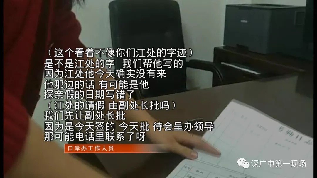 但暗訪發(fā)現(xiàn),也有個(gè)別缺崗人員未按照正常流程履行報(bào)假手續(xù)。2月11號(hào)上午9點(diǎn)40分,市紀(jì)委暗訪組來(lái)到深圳市口岸辦公室,發(fā)現(xiàn)該單位到崗率良好,辦公秩序井然。但在暗訪檢查中發(fā)現(xiàn),本應(yīng)登記當(dāng)天在辦公室上班的口岸辦陸路二處處長(zhǎng)江某并不在辦公室,經(jīng)核對(duì)其請(qǐng)休假情況,其提交的休假報(bào)告是從2月12號(hào)開(kāi)始,但11號(hào),他人已經(jīng)沒(méi)有到崗。隨后,該處一名工作人員拿出了一份登記表,表上寫(xiě)名該處長(zhǎng)今天補(bǔ)休。然而,領(lǐng)導(dǎo)簽字一欄并非單位主管或分管領(lǐng)導(dǎo),而是該處的一名副處長(zhǎng)。暗訪人員發(fā)現(xiàn)這份登記表是11號(hào)當(dāng)天才填寫(xiě)的。