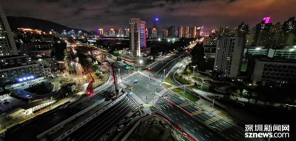 目前,原黃木崗立交所在地面已恢復成平交燈控十字路口,筍崗西路、華富路、泥崗西路實現(xiàn)雙向六車道通行。