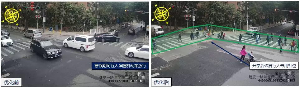 開學(xué)第一天,為應(yīng)對開學(xué)后校園周邊路口上放學(xué)時段車流量、行人流量激增的情況,深圳交警開展了信號配時開學(xué)專項(xiàng)保障,全程關(guān)注校園周邊交通運(yùn)行態(tài)勢,截止至2月18日12時,深圳市執(zhí)行步伐保持101次,優(yōu)化配時調(diào)整112次,相位調(diào)整優(yōu)化7次,調(diào)整時段表51次,調(diào)整臨時方案4次,調(diào)整子區(qū)協(xié)調(diào)5次。