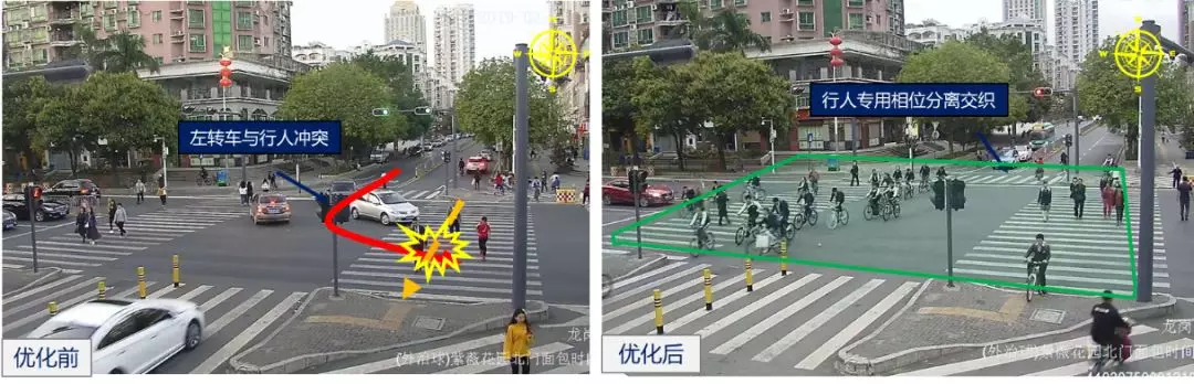 民治街道玉龍學(xué)校周邊信號路口致遠(yuǎn)/龍匯路口在上學(xué)時段啟用機(jī)動車控右策略,在開學(xué)當(dāng)天上下學(xué)時段通過對機(jī)動車采取控右策略,避免右轉(zhuǎn)流與側(cè)邊行人過街的干擾,消除安全隱患。