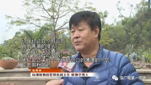 植物學(xué)專家介紹,土沉香是國家二級保護(hù)植物,在深圳的梧桐山和大鵬山區(qū)一帶都有零星分布。這種樹木質(zhì)疏松,本身不適合做家具,但將它砍傷后提煉出的叫沉香的香料,可是價值連城的寶貝。