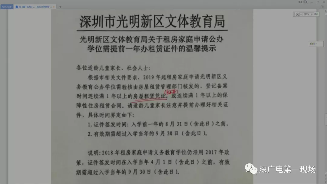 如果租的是商品房,是可以辦《房屋租賃憑證》,也就是紅本,沒有任何限制;但如果租的是農民房,辦的是《房屋租賃信息》,也就是藍本,目前的規(guī)定是,在2019年5月1日前停止受理,而且現(xiàn)在就算去辦,有效期也只能到2019年12月31日。而以往教育部門,要求這個證件的有效截止日期需在入學后一個月。他們擔心這個證件會影響孩子入學。當時我們欄目報道后,光明教育局給家長們發(fā)了一個指引。